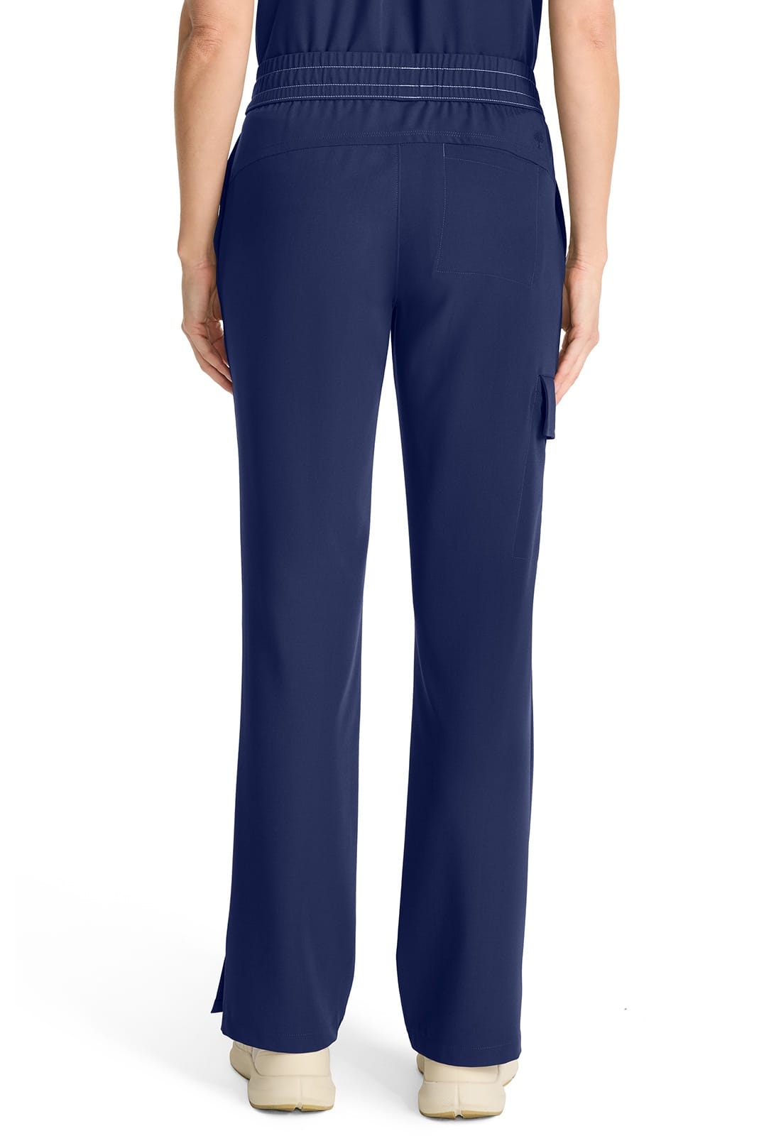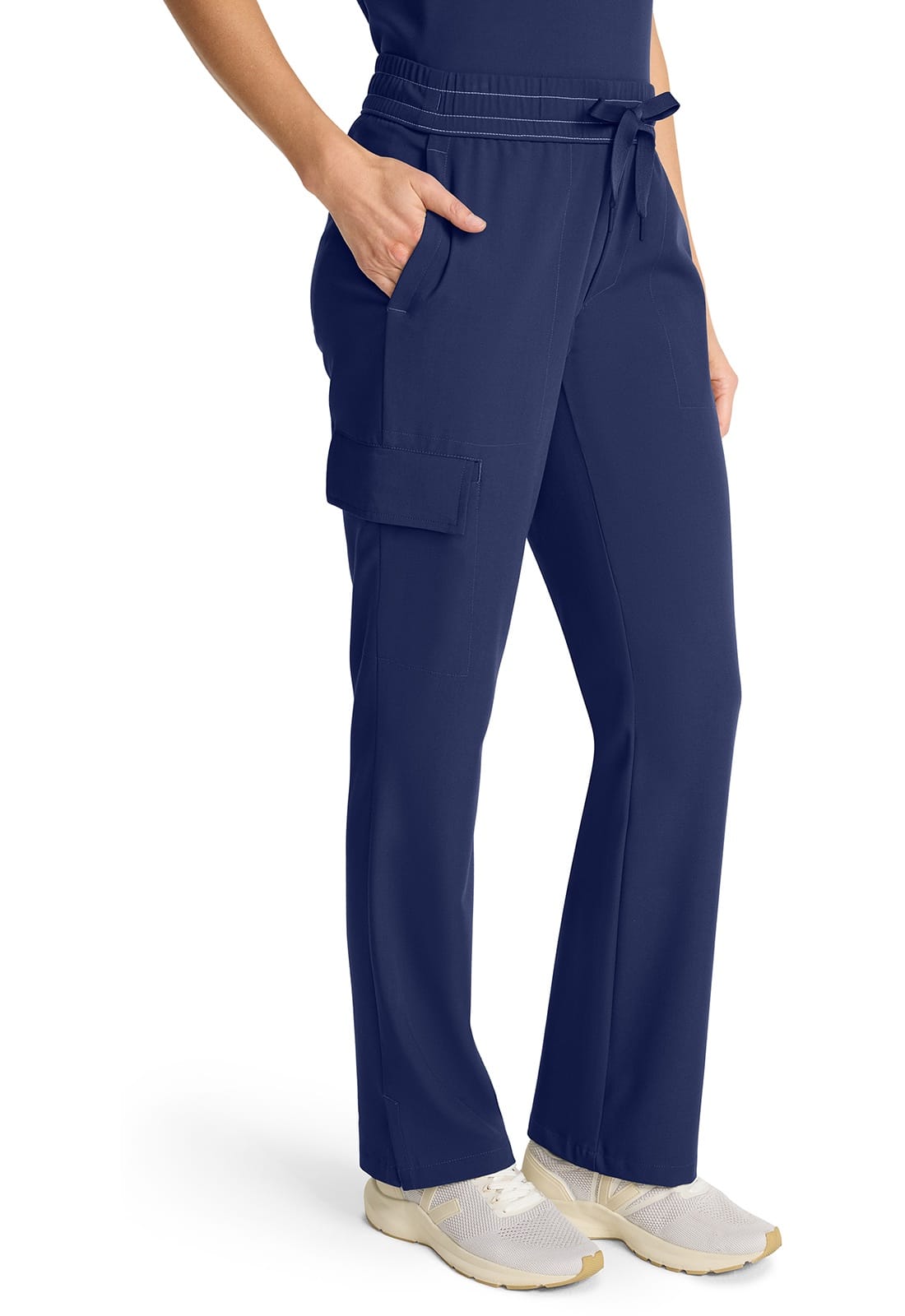 Style and comfort combine for one very wearable pant. The mid rise pant features an elasticized waistband, webbed drawstring, and mock fly. There are four pockets for organized storage: two front pockets, one flap cargo pocket on the wearer¿s right side, and one back welt pocket. Flap cargo pocket converts to a welt pocket for easy access. Pockets include pretty printed pocket bag. Curved back yoke for a better fit across the hips. Side vents at hem. The soft four-way stretch fabric includes moisture wicking for added comfort. Modern fit.