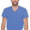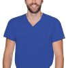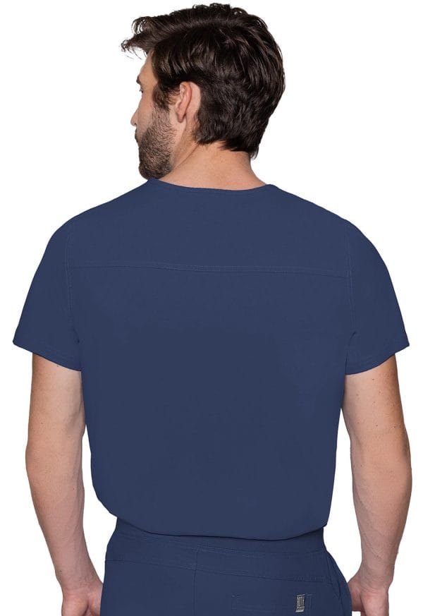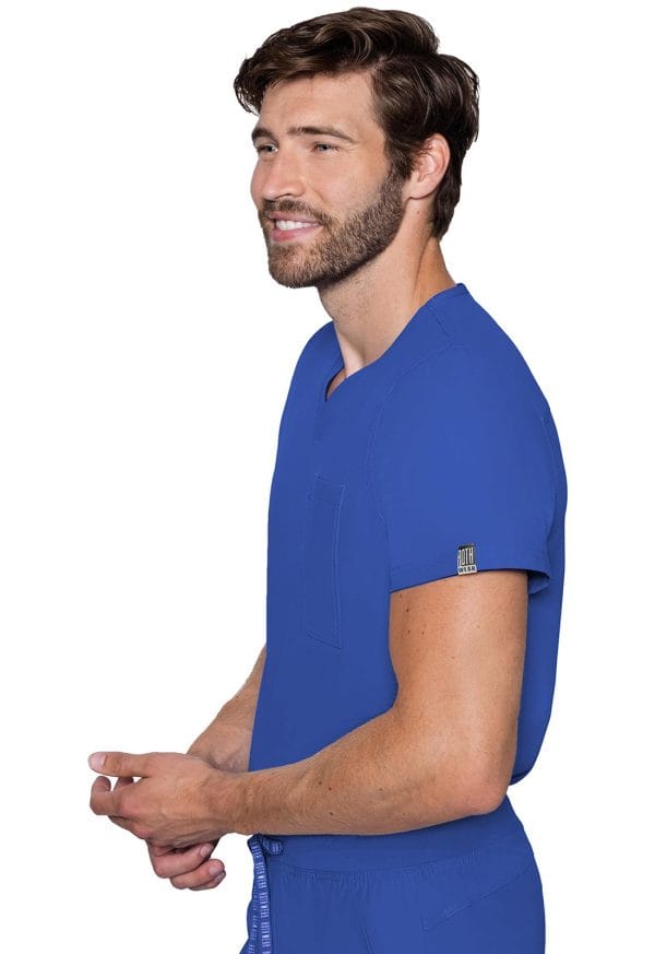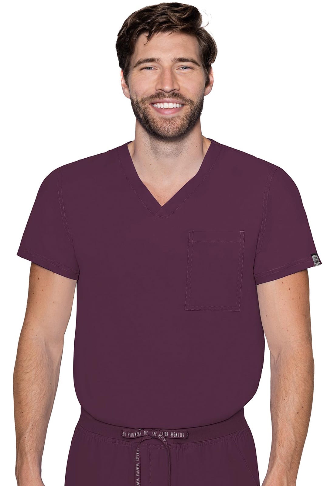 Stand out in this modern one-pocket scrub top that you can tuck in. Office fashion ready in WFH comfort. Men's fit.